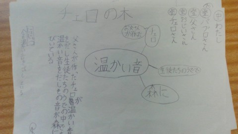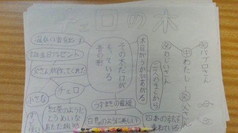 「チェロの木」を読んで,物語の中から心に残った叙述を一つ選び、自分のお気に入りとして書き出しました。