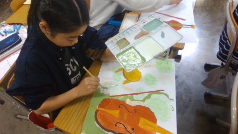 文章を手がかりに、感じた音や色、登場人物の思いなど、それぞれの世界がのびのびと描かれています。