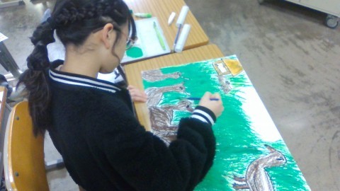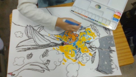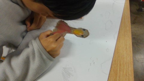 じっくり時間をかけて読み取ったことを、色や構図で表現した作品には、それぞれの感じ取った「大造じいさんの世界」がにじんでいます。