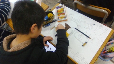物語を丁寧に読み進める中で、子どもたちは心に響いた一文を選び、その叙述から浮かんだ情景や思いを絵に表しました。