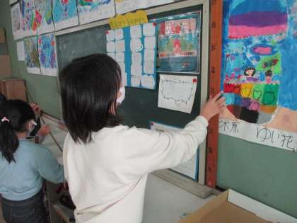 1mを習いました。1mの定規を使って教室の中にある身の回りの長さを調べました。