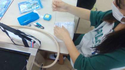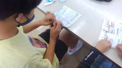 家庭科の学習で「本返しぬい」「半返しぬい」「かがりぬい」に挑戦しました。