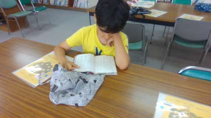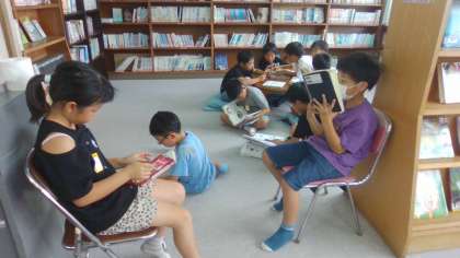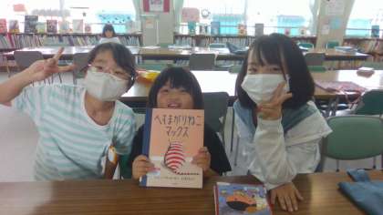司書の先生がお休みだったので、友だち同士で読み聞かせをしていました。