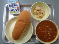 今日のこんだてコッペパン・牛乳ビーンズシチューツナとポテトのマヨネーズ風味焼き「...