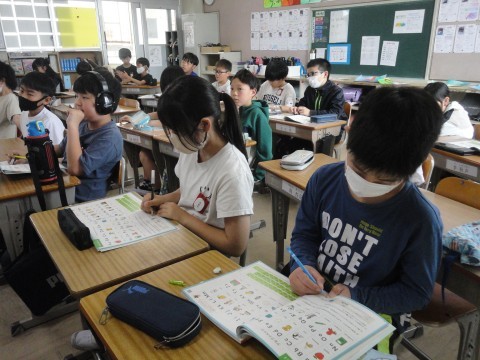 5年生 外国語・算数のテスト 公開日 2025/04/23 更新日 2025/04/23 5年生 5年1組は、外国語です。今までの既習のローマ字と今回のアルファベット表記の違いも学んでいました。5年2組は、算数のテストです。整数と少数の単元でした。 +3