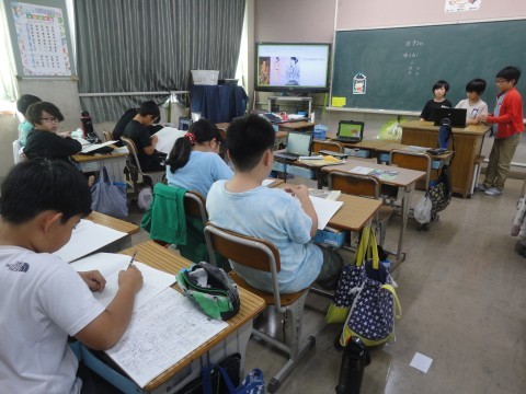 このグループは、聖徳太子について調べ、お母さんの名前(穴穂部間人皇女)や四天王寺のことなどを伝えていました。お母さんの名前の読み方(あなほべのはしひとのひめみこ)がわからず、先生を頼ろうとしていましたが、先生の促しで自分たちで伝えることができていました。先生の待つ姿勢も素敵でした。