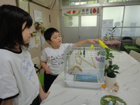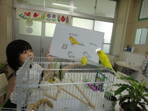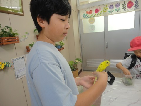 緊張感があると、インコのぴよちゃんにも伝わるようで緊張した様子が見られます。休み時間をしばらく過ごすと、触っても大丈夫になっています。インコと一緒に過ごしているこどもたちの表情が、だんだん穏やかになってくると、ゆったりした時間が校長室に流れます。