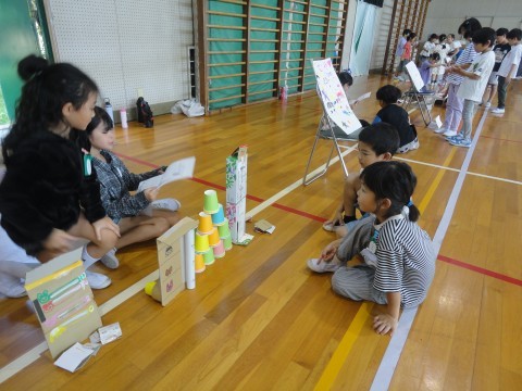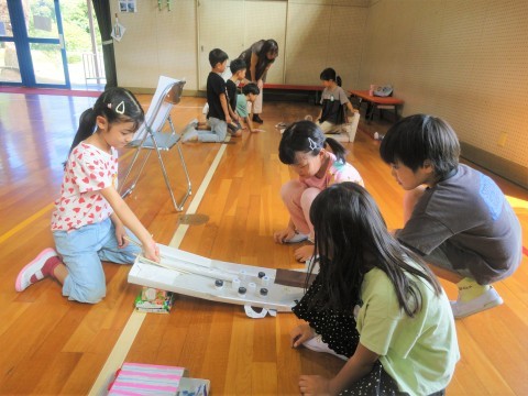 今日は、遊び方を説明するときに紙を見て読んでいましたが、15日はこども園の年長児が来ます。その時は顔を見て、わかったか様子を見ながら説明してくださいね。