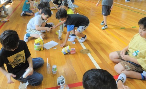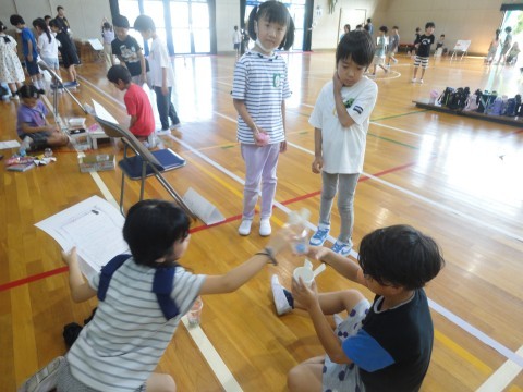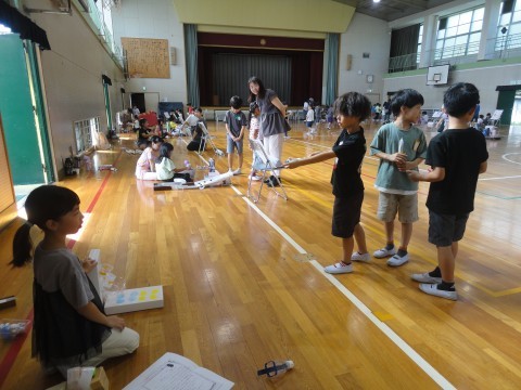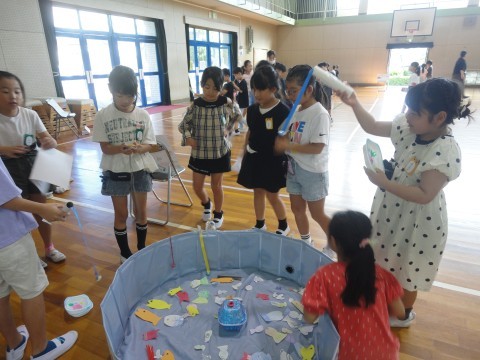 自分たちでつくったおもちゃで遊ぶ日になりました。今日は1年生を招待します。