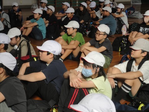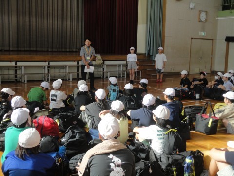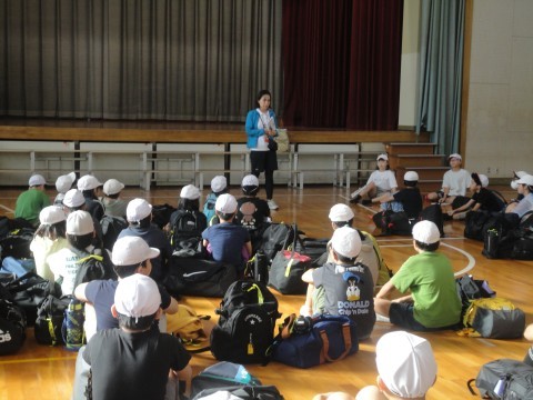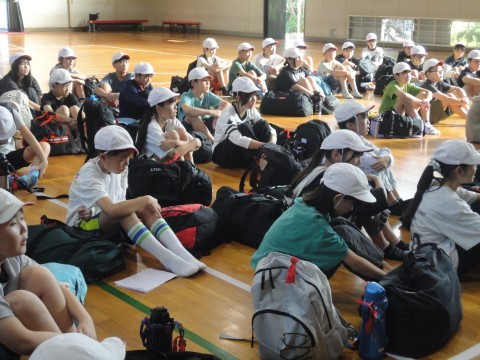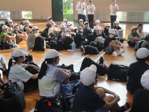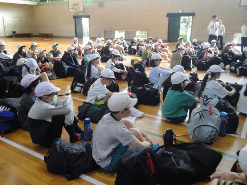 5年生は体育館で出発式を行いました。楽しみにしている様子が、待っている姿から感じられました。