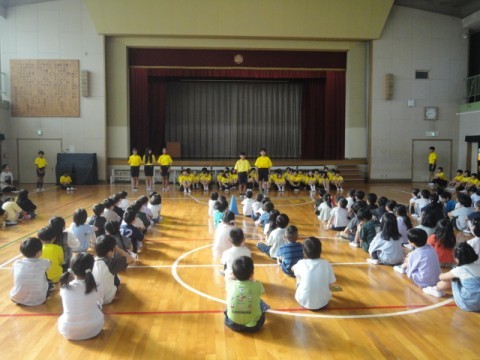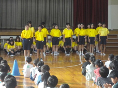 朝から体育館で6年生の連合運動会の壮行会が行われました。