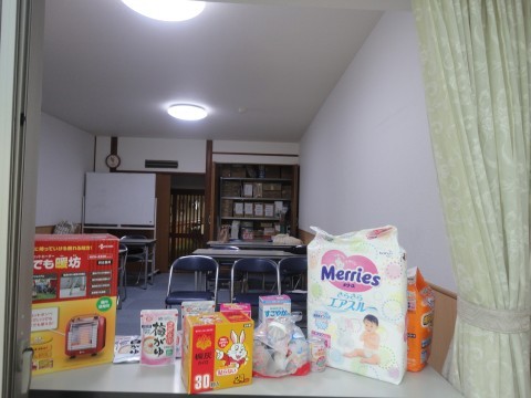 地域会館では、妊婦さんや赤ちゃんがいらっしゃる方、ご高齢の方々が避難できるようにご準備くださっています。