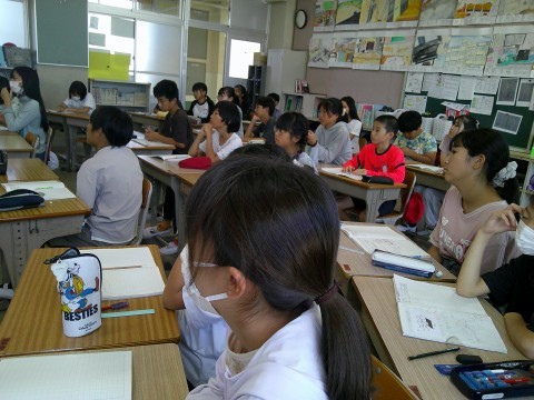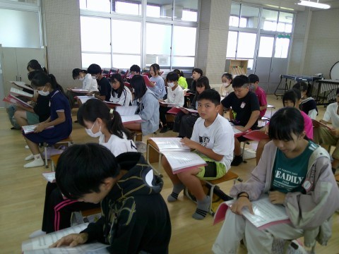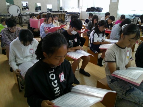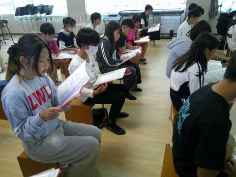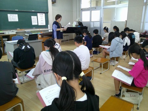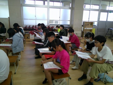 6年1組 音楽 2組 算数 公開日 2025/10/17 更新日 2025/10/17 6年生 1組は、音楽の「地球星歌~笑顔のために~」を歌っています。二部合唱になっていくのでしょうか。とてもきれいな曲です。好きな曲ですので、聴かせてもらえる日を楽しみにしています。2組は、算数です。時間ごとにどれぐらい水が増えていくのかxとyの関係を式を使って考えていました。連運をがんばったみんなだからと、担任の先生からは励まされて取り組んでいました。 +7