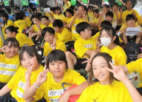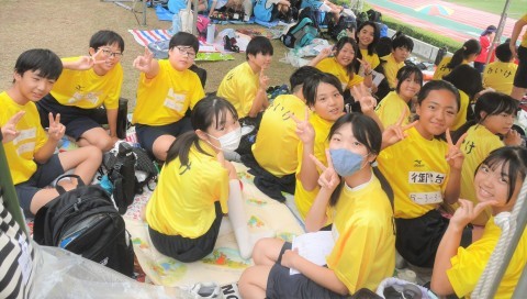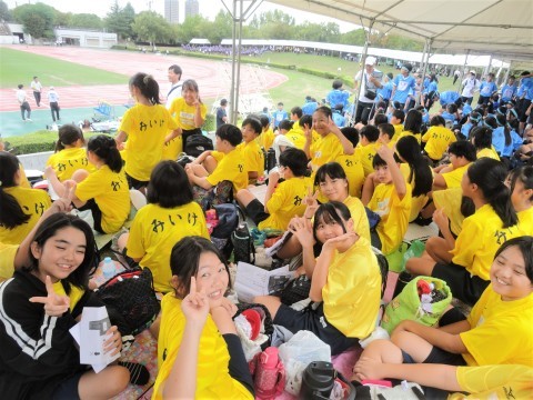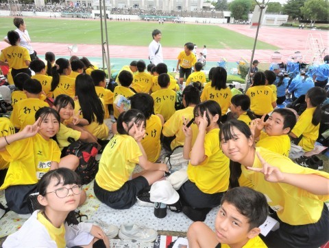 10月16日 連合運動会(金岡競技場) 公開日 2025/10/17 更新日 2025/10/17 6年生 昨日は金岡競技場で堺市の小学生の半分の学校が集まり連合運動会を行いました。本校は2日めで、その前の日にもう半分の学校が開催していました。金岡競技場に到着したときは曇り空で、涼しくて快適でした。その後、開会式のために競技場に移動すると大雨に見舞われテントの中での開会式となりました。開会式の前の表情です。 +5