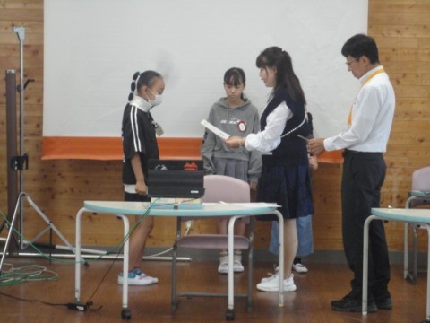 校長先生から挑戦すること、6年生『連合運動会』、5年生の『臨海学校』のお話がありました。