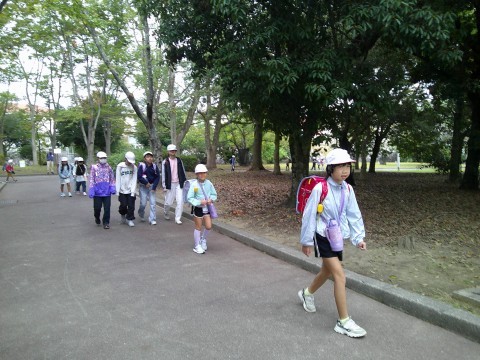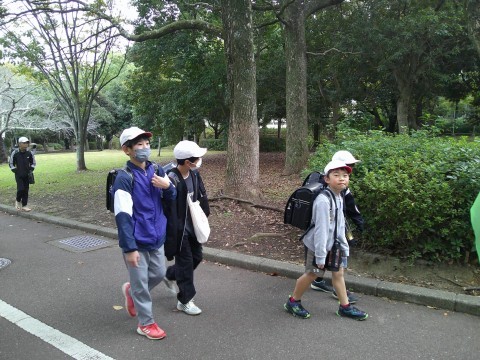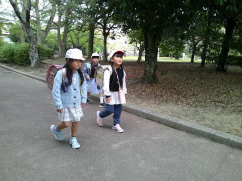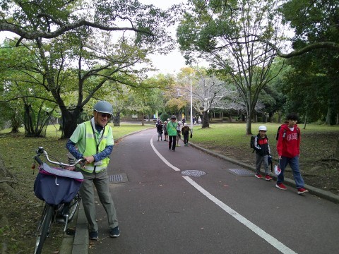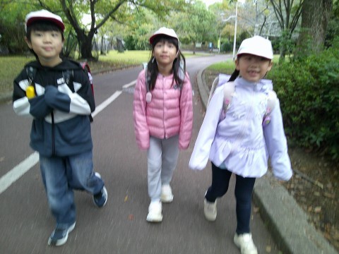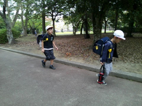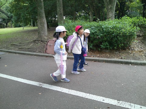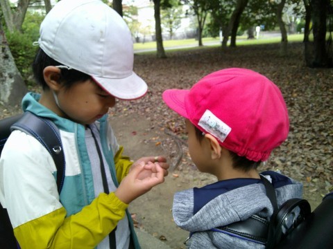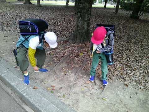 植え込みの中を入って登校している児童がいましたが,どんぐりを探していたら中に入っていたそうです。緑道添いはどんぐりの木がたくさんありますね。