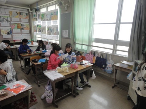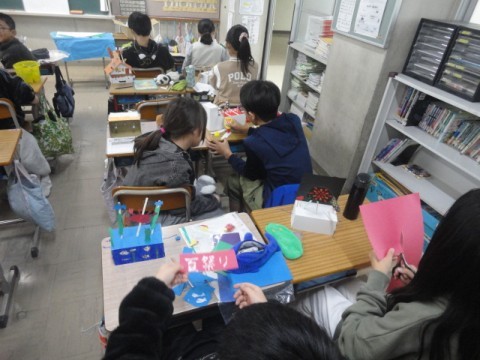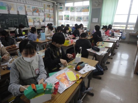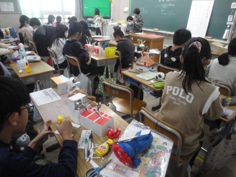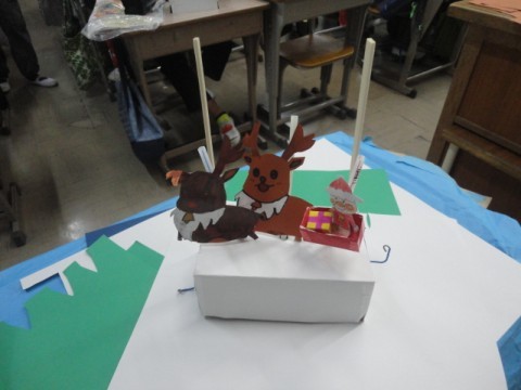 6年1組は図画工作の授業で「くるくるクランク」という作品を作っています。