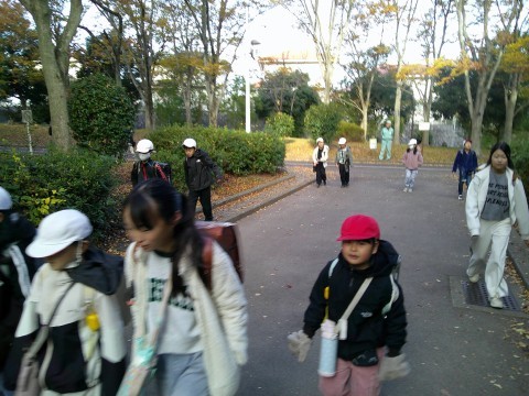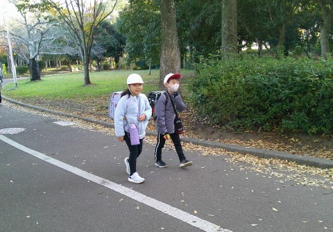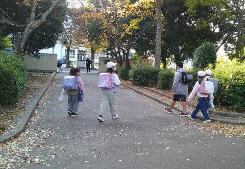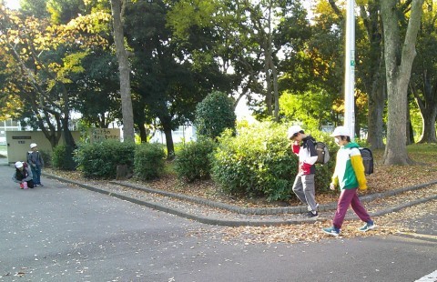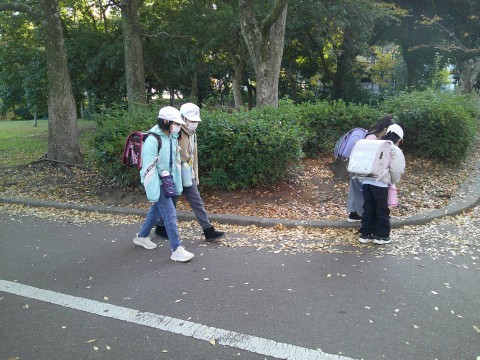今日の登校はポツリポツリで,8時25分を過ぎてもまだ緑道を歩いている児童が多くいました。