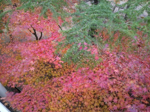 3年生の廊下から,紅葉が近くで見ることができます。