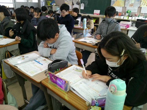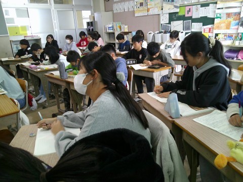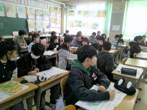 1組の家庭科では,冬の部屋を明るく暖かく過ごすための工夫などを考えています。
