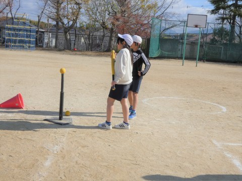 体育でベースボール型ティボールバッティングです。