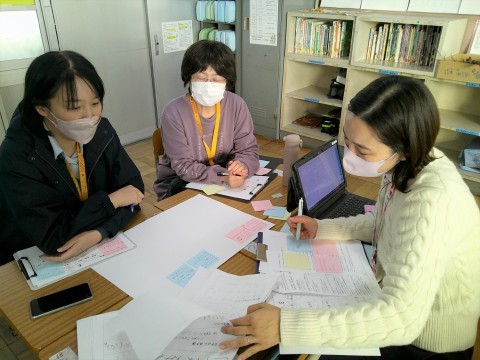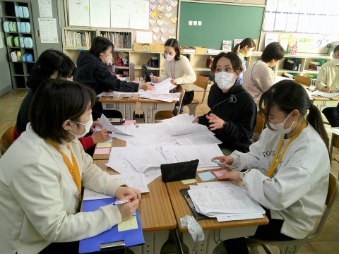 そのあとは全体の討議会です。こどもたちがたてた「問い」を解決しようとしていたか・・・を討議の柱として,一人ひとりの様子を振り返り具体例の中で話し合っていきます。先生たちも思ったことを表出して,学び合っています。