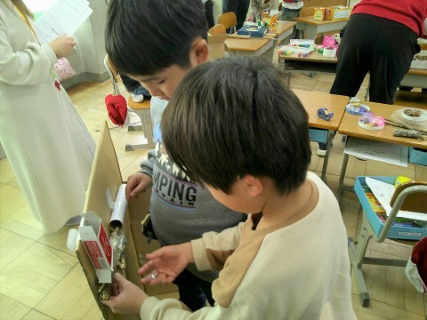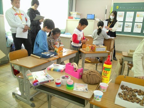 くじでは,はずれをもっと多くつくったらいいとアドバイスを受けたので,はずれをつくっていたり,ドングリゴマをどんどんつくっていっていたり,みな目的をもっているので,とても集中していました。