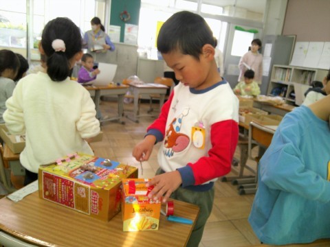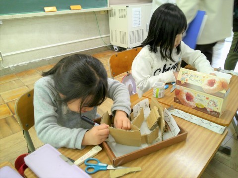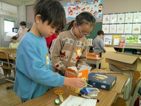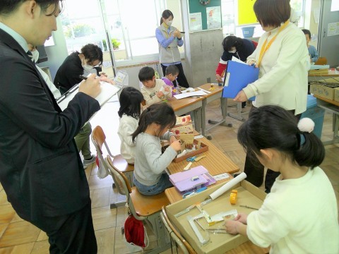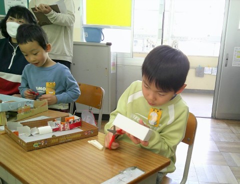 チャイムが鳴るまで,しーんとして緊張感が漂っていたそうですが,授業が始まるとつくりたい気持ちが上回り,どんどんと自分のおもちゃをつくっていきます。