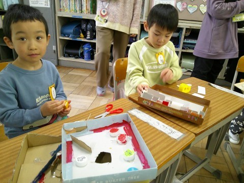 最終目的は,このおもちゃで幼稚園,こども園の年長さんに遊んでもらうので,お兄さんお姉さんとしてはりきっているのです。相手のことを思って,工夫していく姿は頼もしく感じました。