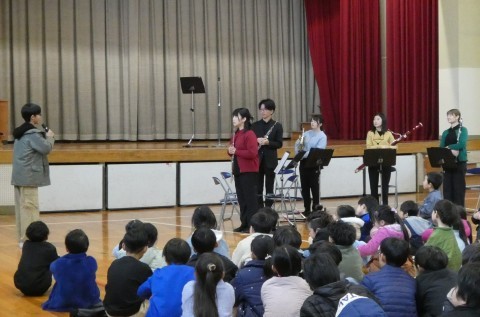 今回は,芸術の体験が少ないこどもたちにぜひ,本物の音楽を近くで感じてもらえる機会がほしいと願って実現しました。そして,その感じたことを言葉や文章で豊かに表現できるこどもたちに育ってほしいという願いもありました。この2つの思いを,演奏の前にこどもたちに伝えました。