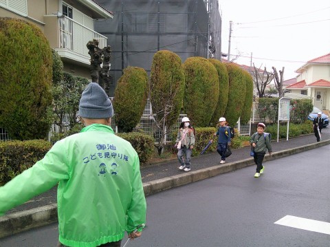自治会長さんや市教委の指導主事の方,地域のみなさま方にこどもたちの帰りを見守ってくださいました。