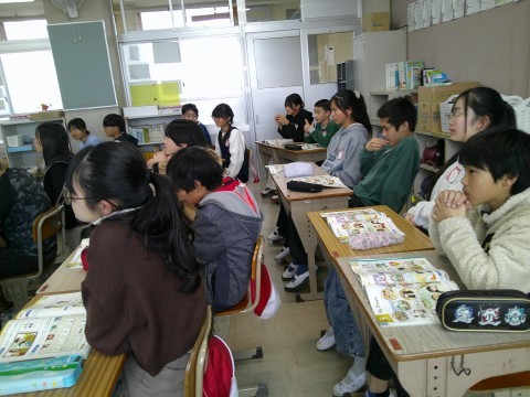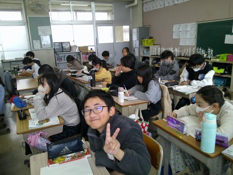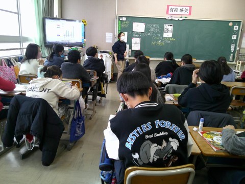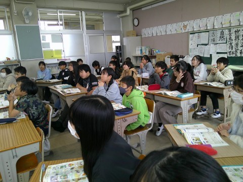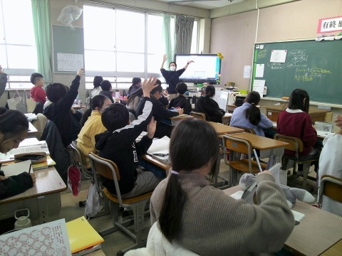 6年生 1組社会 2組外国語 公開日 2026/01/22 更新日 2026/01/22 6年生 1組は社会で,太平洋戦争に向かっていく時代を学んでいます。2組は外国語で,「I want to join the~」を使って,自分の参加したいクラブやチームについて話していました。 +6
