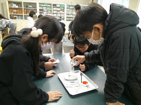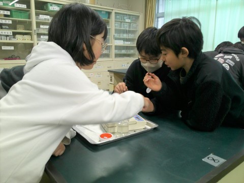 5年2組 理科 公開日 2026/01/22 更新日 2026/01/22 5年生 ものの溶け方について実験をしています。手順に沿ってグループで行っています。計りを使い,定められた量にする準備までも楽しんでいます。予想どおりだったかな。 +6