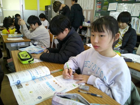 ものの溶け方について先日実験した考察などをプリントにまとめていました。