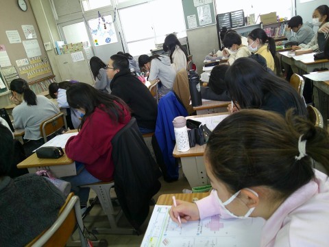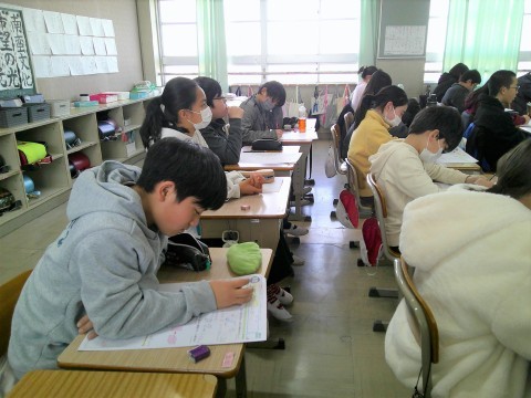 6年生 1組算数 2組社会 公開日 2026/01/27 更新日 2026/01/27 6年生 1組は,算数のしあげテスト2組は,社会の「アジア太平洋に広がる戦争,新しい日本へのあゆみ」のところのテストをしていました。 +7