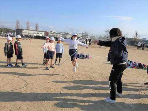 3分間の記録をとる前の,2年生2クラスの気合は,いちばんでした!