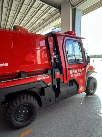 防災センターに到着後、消防車の見学を行いました。