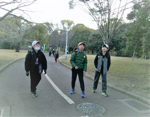 1枚めの写真では,視線の先に手作りブーメランが飛んでいます。(木の枝でわかりにくくなっていますが)