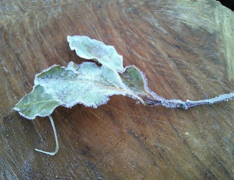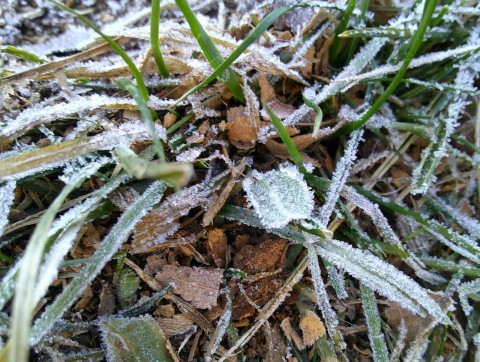 緑道の草が白くなっていました。「なにしてるの?」と声をかけてくれた児童と霜の観察をしました。