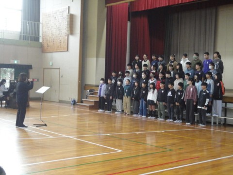 最後は学年合唱「地球星歌~笑顔のために~」スローテンポのとても聴きやすいやさしい合唱でした。