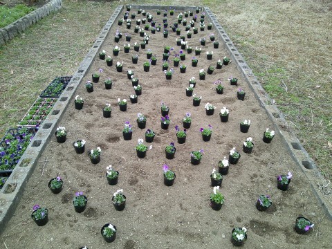 2月20日(金)体育館・北門前の花壇 公開日 2026/02/20 更新日 2026/02/20 学校紹介 学校安全管理員さんが種から育てたビオラが育ってきたので,花壇に植えてくださいました。ひもをつかって幾何学模様のデザインにしてくださいます。株を大きくすると白が縁になりとてもきれいになるだろうなと想像すると楽しくなります。ネモフィラも大きくなってきました。ほんとうにありがとうございます。