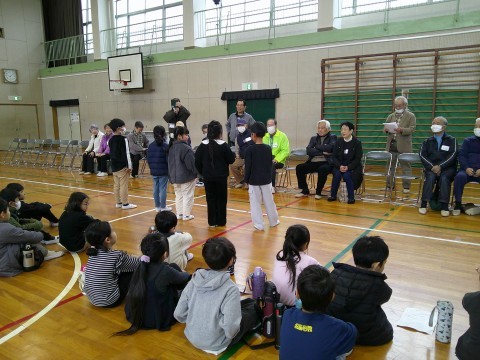 1年生 老人クラブの方々との「むかしあそび」交流 公開日 2026/02/26 更新日 2026/02/26 1年生 今日の1・2時間めに体育館で,老人クラブの方々と「むかしあそび」交流をしました。はじまりのあいさつの様子です。 マイクをもって一人ずつがあいさつをしている様子をみて「すごいな~」とつぶやかれたり,拍手をくださったり・・・あいさつの場面でも1年の成長を喜んでくださっていました。 +2