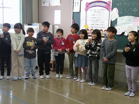 2年2組 生活発表を1年2組へ披露しました 公開日 2026/02/27 更新日 2026/02/27 2年生 2年2組のこどもたちが,「3時間めに発表会をするので見に来てください」とご招待してくれました。1年2組のこどもたちが,じっと見ていました。参観の日に保護者に見ていただいたときより,のびのびときれいな歌声に変わっていました。それに楽しそう・・・参観の日は,担任の先生もいなかったし,緊張しましたよね。よく自分たちでがんばりました。 +6