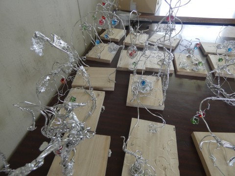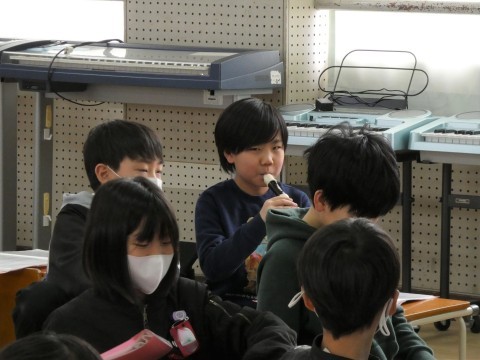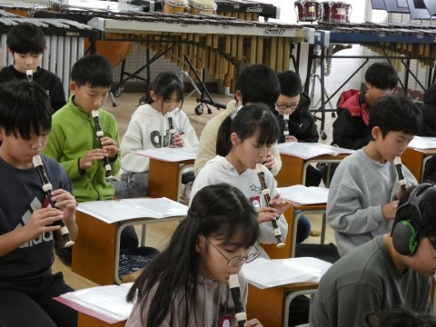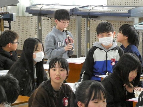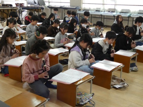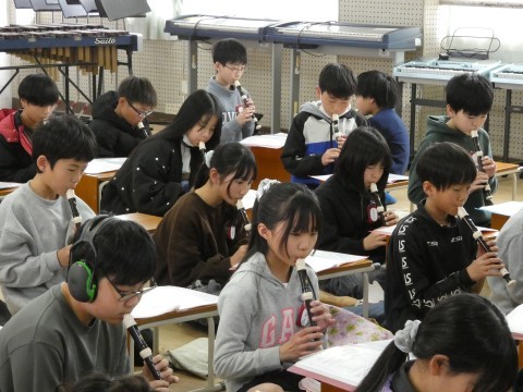 5年1組 図工の作品と音楽 公開日 2026/03/06 更新日 2026/03/06 5年生 図工で作成している針金アートがありました。形を作ろうと思ってできあがったのだろうと思う作品,偶然から生まれた作品,困ったんだろうと想像できる作品・・・つくっているみんなの顔が浮かんできそうでした。5年1組のこどもたちは,音楽でした。威風堂々のテストをしていましたよ。とても高い音やシャープもあるのに,よく練習していましたね。 +6