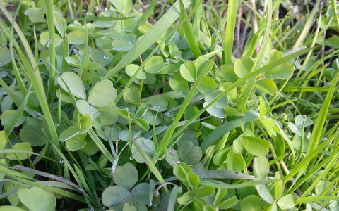 学習園の田んぼのレンゲも葉が伸びてきました。朝露がコロコロしていてなんとも愛らしいです。