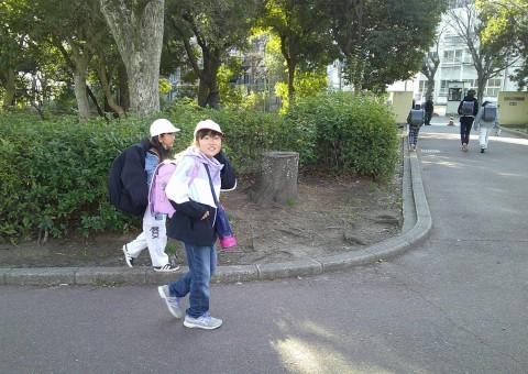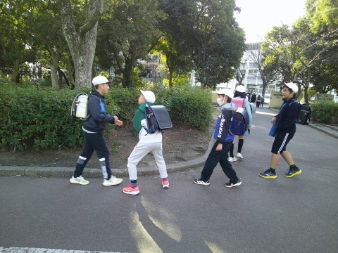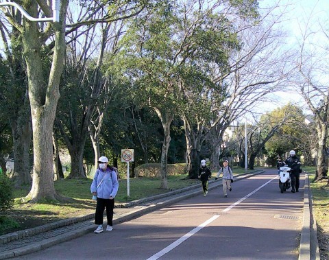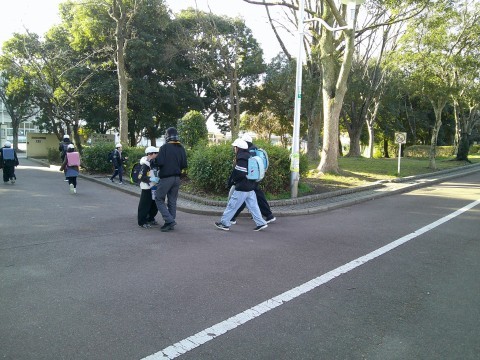 まだ肌寒い朝です。見守り隊の方々から「今日はいつもより遅いね」と話しておられたのですが,8時20分になってもまだ姿があっちもこっちも見えていました。