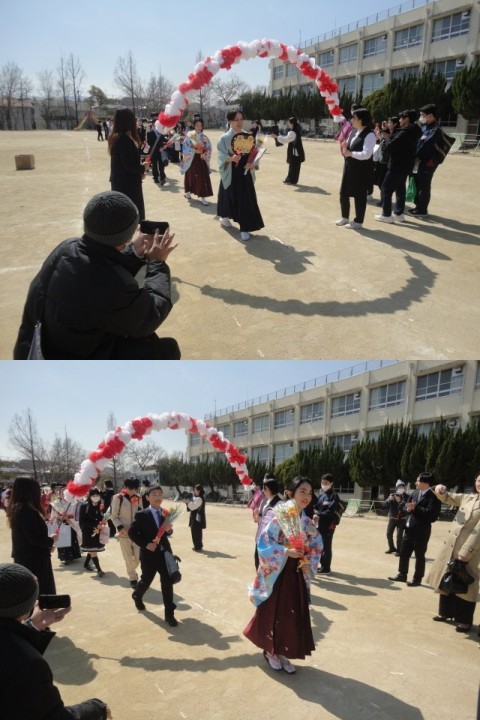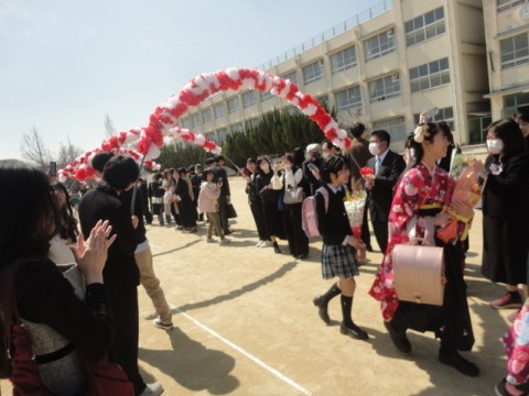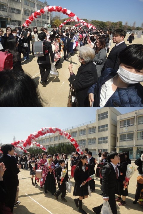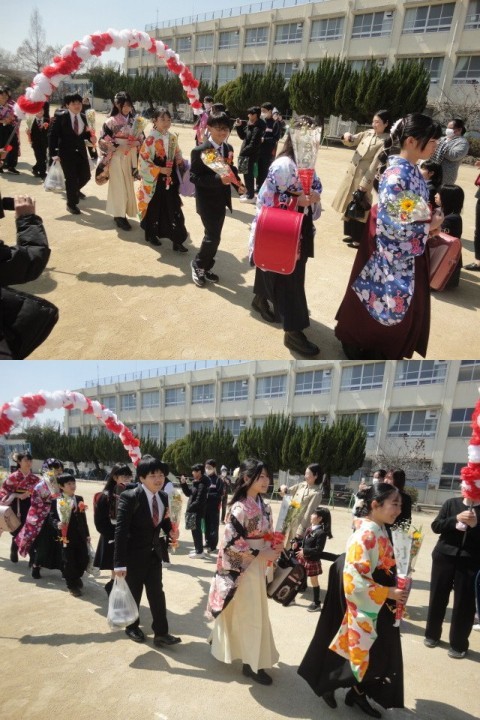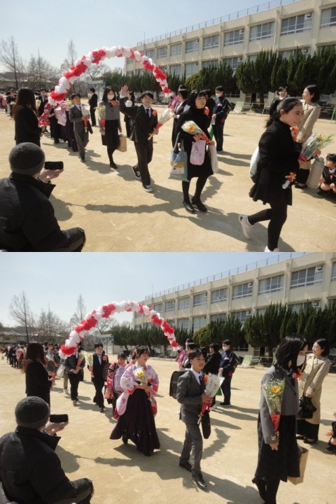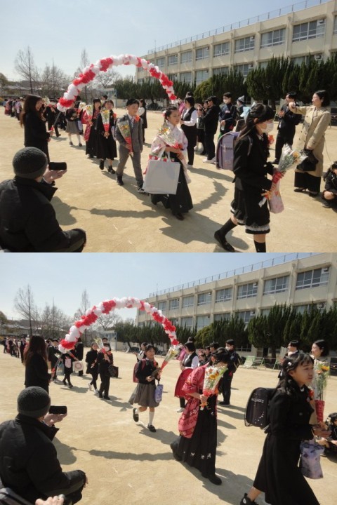 暖かい晴天のもと3月17日に御池台小学校から6年生60名が巣立っていきました。