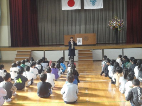 3学期には,午年にちなんで,前をむいて進むこと,思いやること,ふんばることもできたかな?と話がありました。
