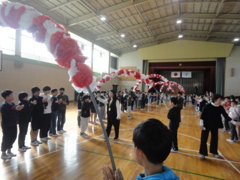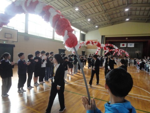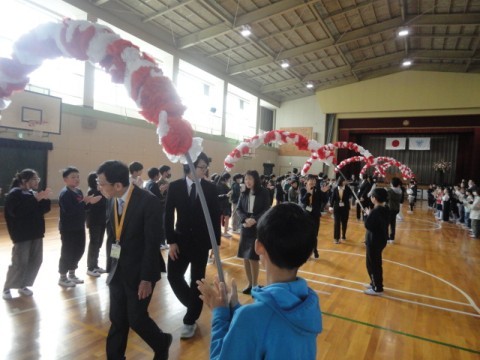感謝の気持ちをこめて、全校児童・教職員みんなで拍手を送りました。