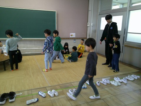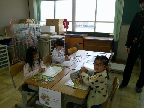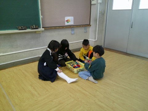 荷物整理をしたら,好きな遊びをしていました。今までの幼児教育の環境と同じだねと思えたようで安心して遊び始めていました。